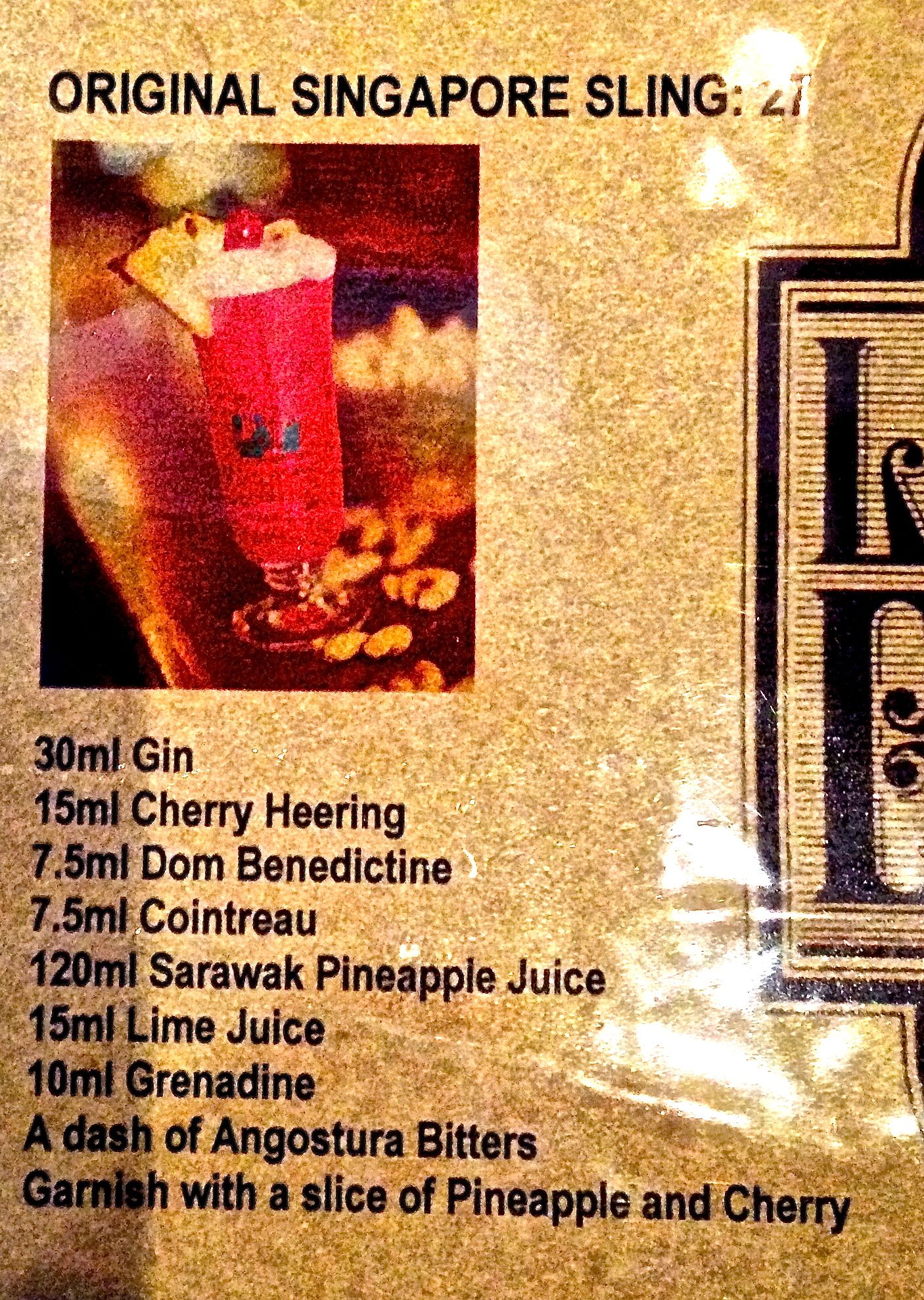 Can’t wait to try the Singapore Sling, yum yum.