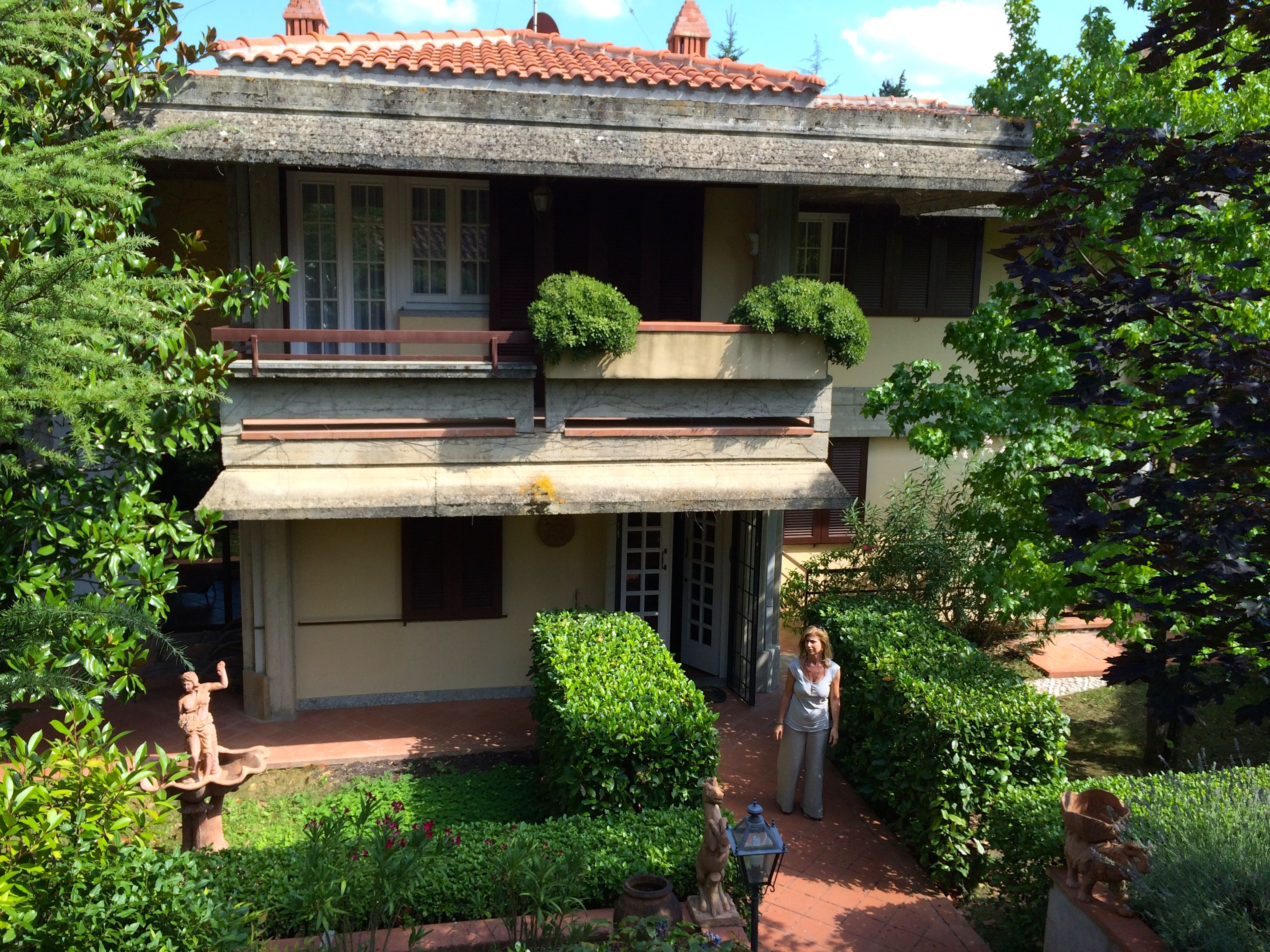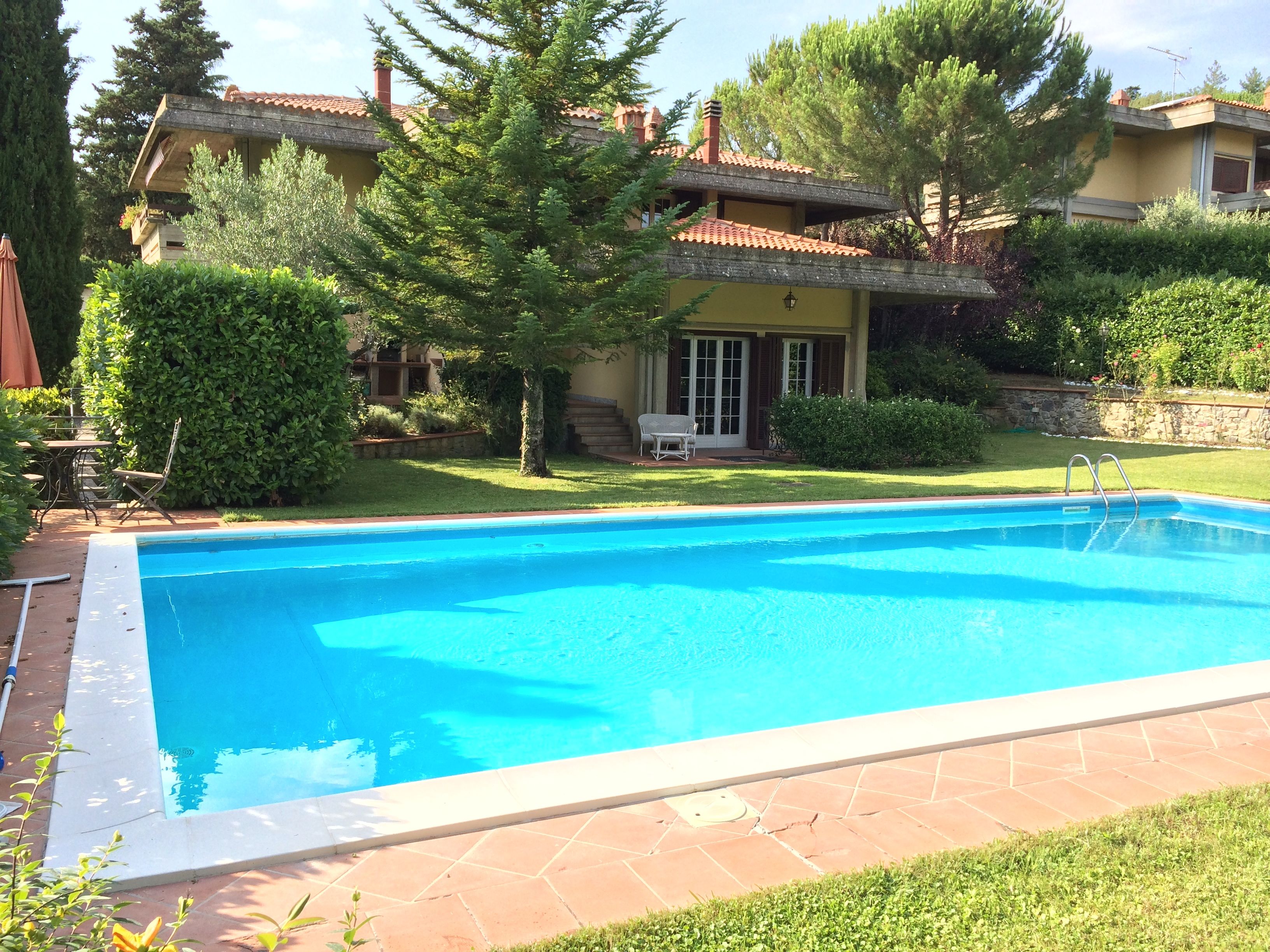 Our villa is nice. It is not a Tuscan farm-house, but rather a contemporary home in a subdivision with two other similar homes, (if you can call three houses in a row a subdivision). We have three floors, 4 bedrooms and 4 baths. For one reasonable price, the villa includes a large swimming pool, not heated, and a tennis court that is only heated when Rita and I get into a dispute over a close line call. The villa has a patio where we can take our meals over looking the pool and tennis court. From our patio, we can see the Tuscan hillsides, vineyards and, occasionally, a beautiful sunset.