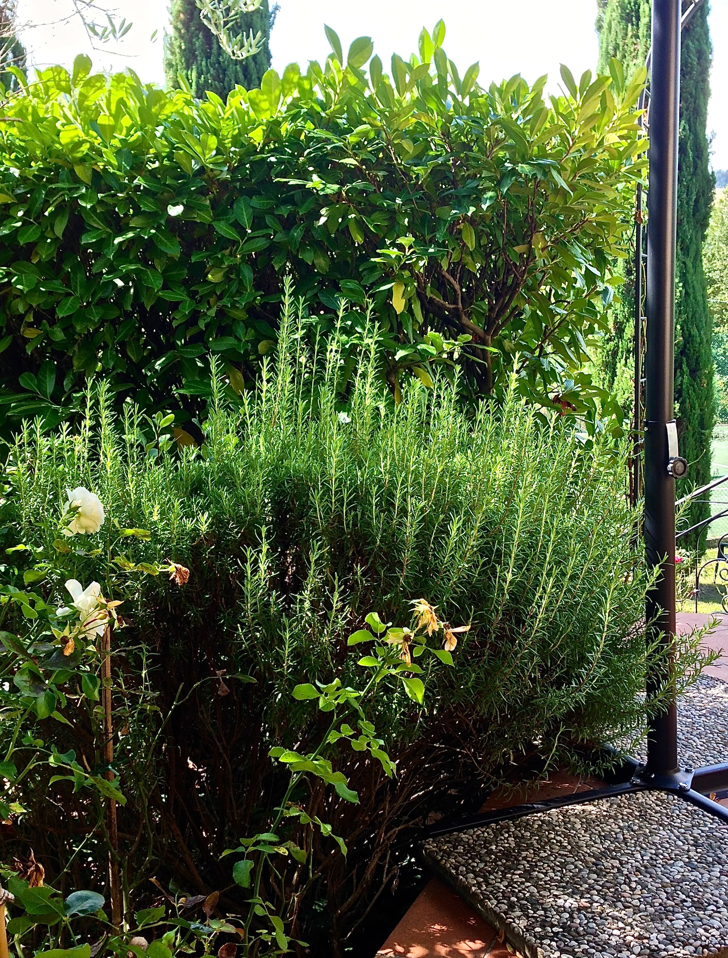 On Thursday, August 21st, we took a private Italian cooking lesson at our villa. We made a homemade tagliatelle pasta with a meat sauce (family recipe), homemade gnocchi with a pesto sauce, a salad and a dessert of biscotti. In addition to the food, and how to cook it, we also learned that we have fresh herbs growing in our garden and we didn’t even know it!! Our instructor, Elisa, asked us if we had any thyme or sage and of course, we said “no, sorry”… She was soooo puzzled by that. Then later on when it came time to eating our meal, we decided to eat outside on our lovely patio and loah and behold…. Right before our eyes… yes, fresh herbs. The rosemary was so big and high that we both thought it was just a landscaping bush of some kind!! We have another one growing right outside our kitchen window that hangs over the brick wall, and it is huge, too! Then Elisa pointed out the thyme, sage and oregano. Thanks Elisa!!