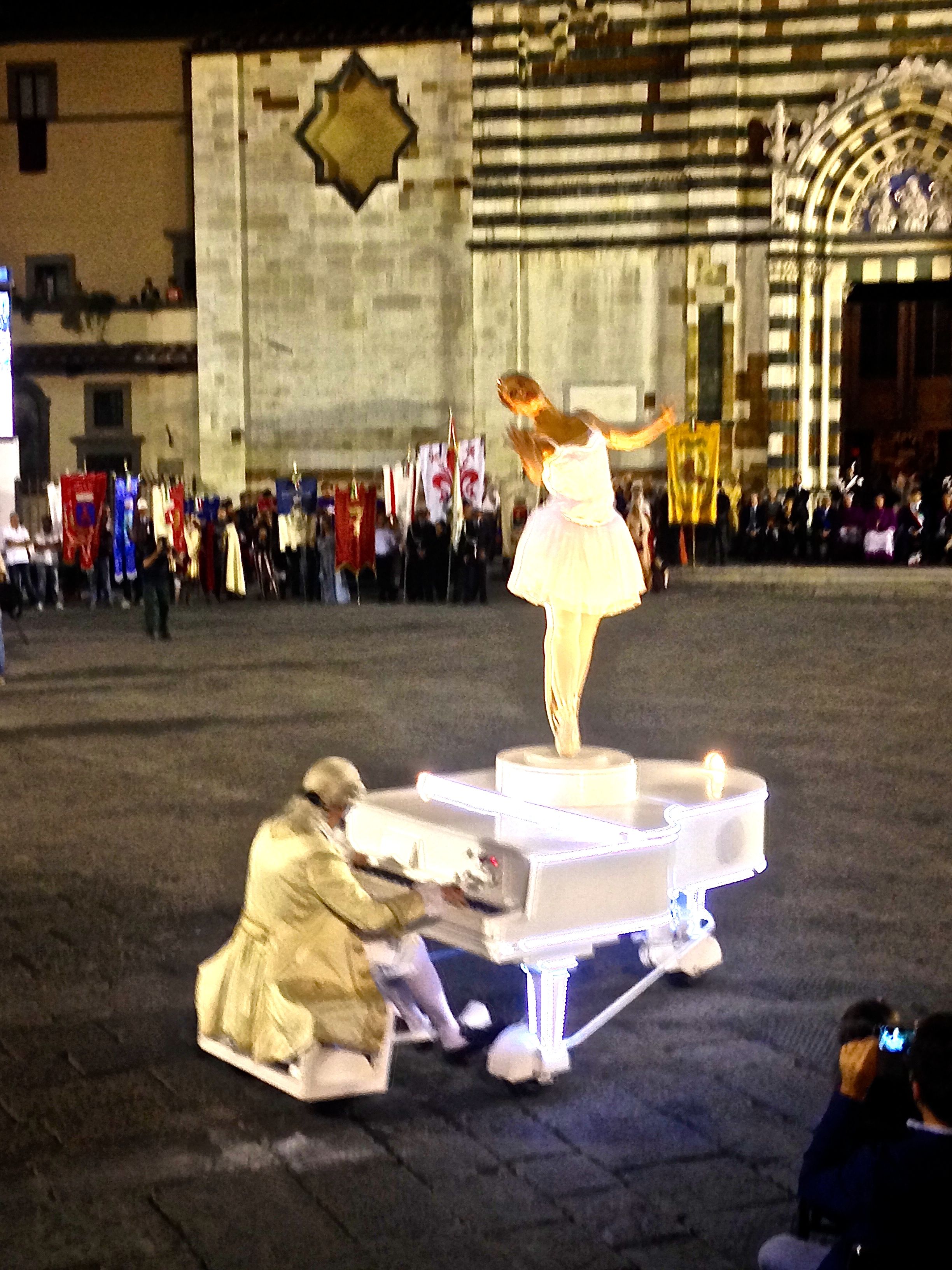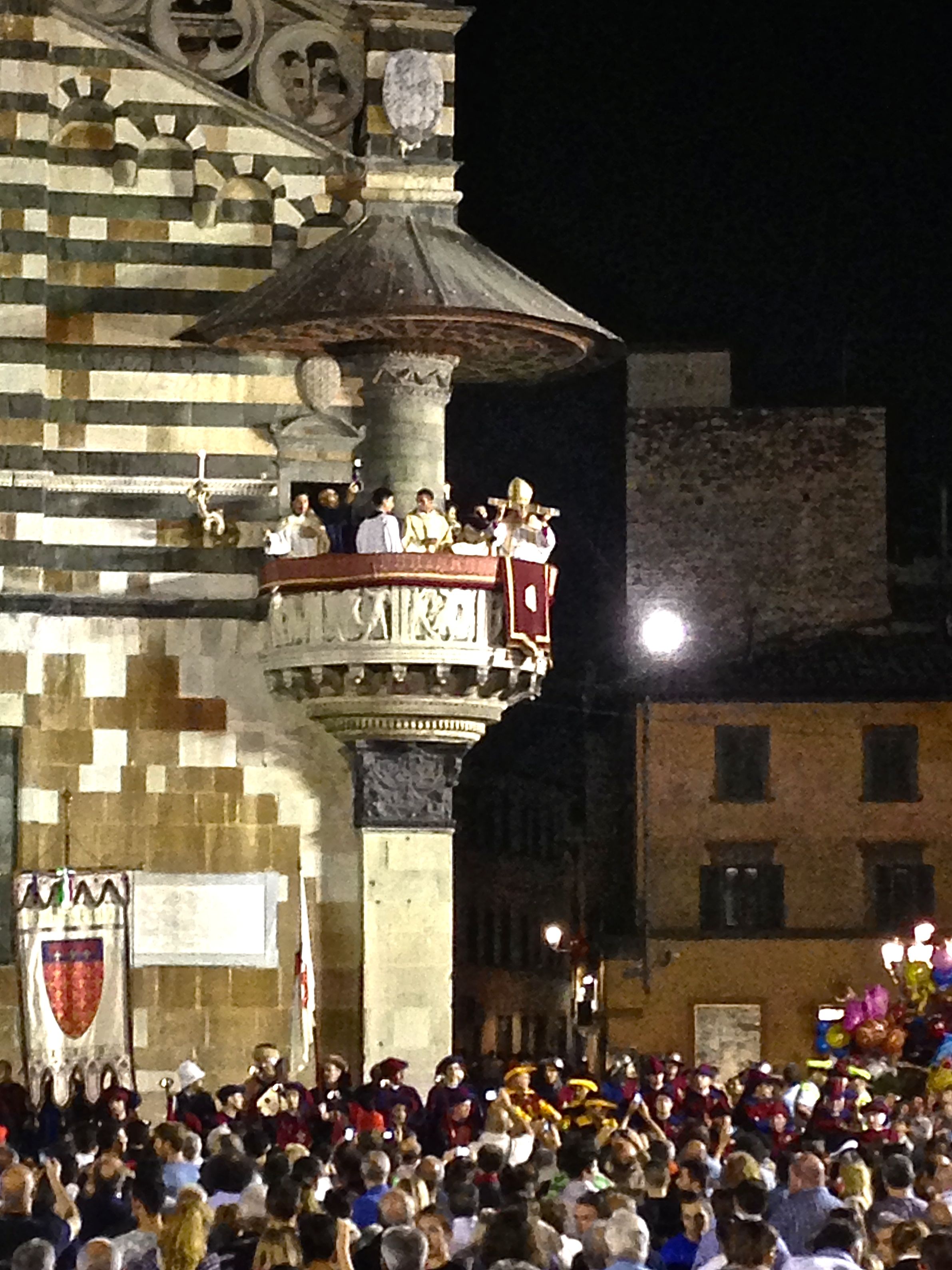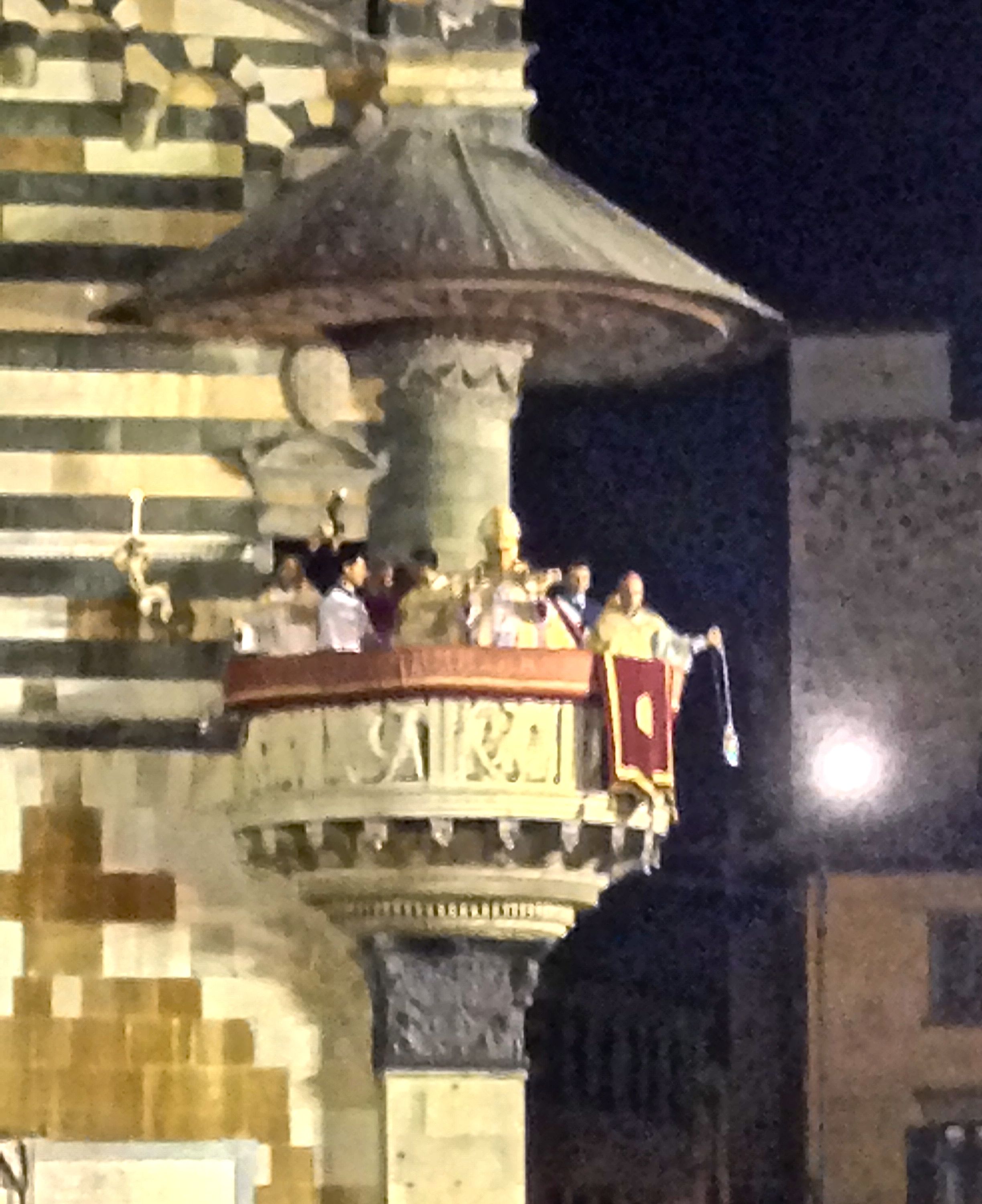 We anxiously watched as the reliquary box that holds the belt was unlocked by the Bishop through the use of two separate keys and then displayed inside the Duomo to the people attending the special mass, and then outside on the Donatello pulpit. After it was displayed three times, we decided to leave our perch and head home for the night!
