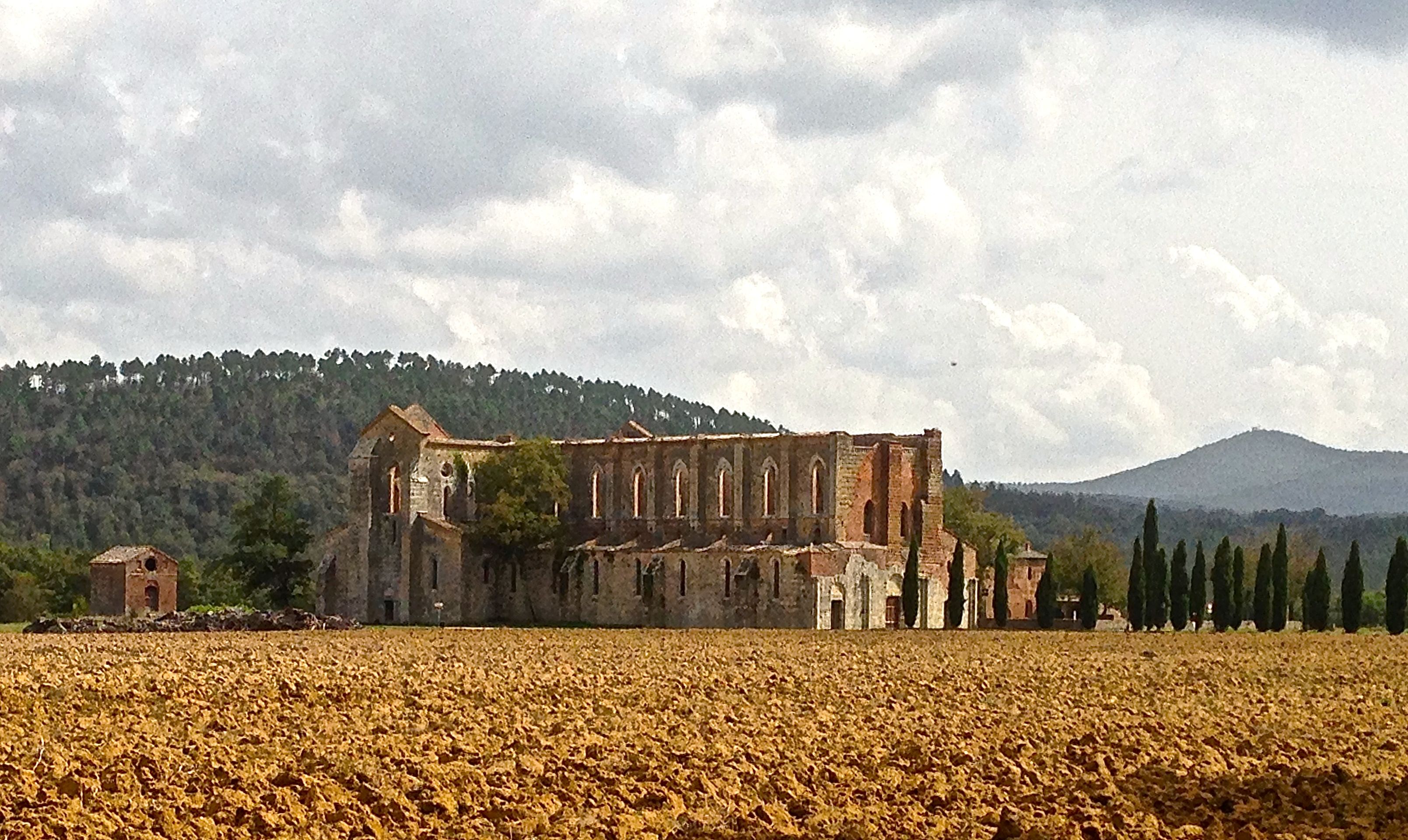From Colle, we drove through St. Galgano, which is a church and old abbey. We kind of stumbled upon St. Galgano. But, we were delighted to have found it. Apparently, the Italians claim the sword in the stone story to take it from the English. Three hundred years before King Arthur, Merlin (and the English version of the sword in the stone), there was St. Galgano and his sword in the stone. When he gave up his worldly life to become a hermit, he drove his sword into a stone that was described as “parting like butter”. The sword in the stone is still there and we visited it.
