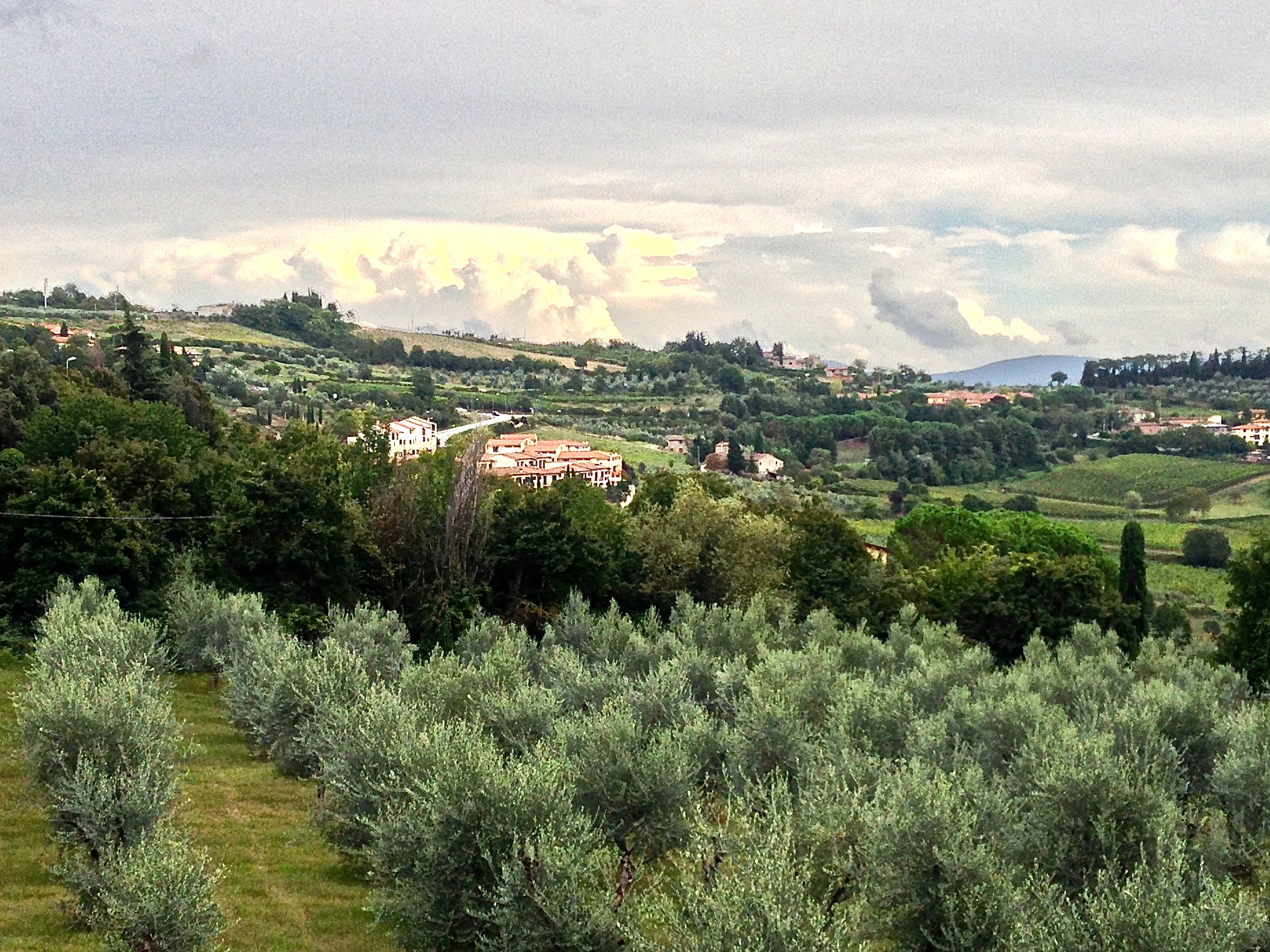 All of the wine we have tasted is from previous year harvests. But, when we returned to Greve we found the Wineries/Vineyards beginning to start the harvest of grapes for next year’s wine. The leaves on the vines have started to turn brown, all the excess grape bunches have been cut away to fall on the ground and what remains are huge bunches of low hanging grapes on the bottom of the vines. Of course, the grapes have turned a brilliant purple or in some cases almost black. It is an exciting time here in Greve and you can feel it in the air.