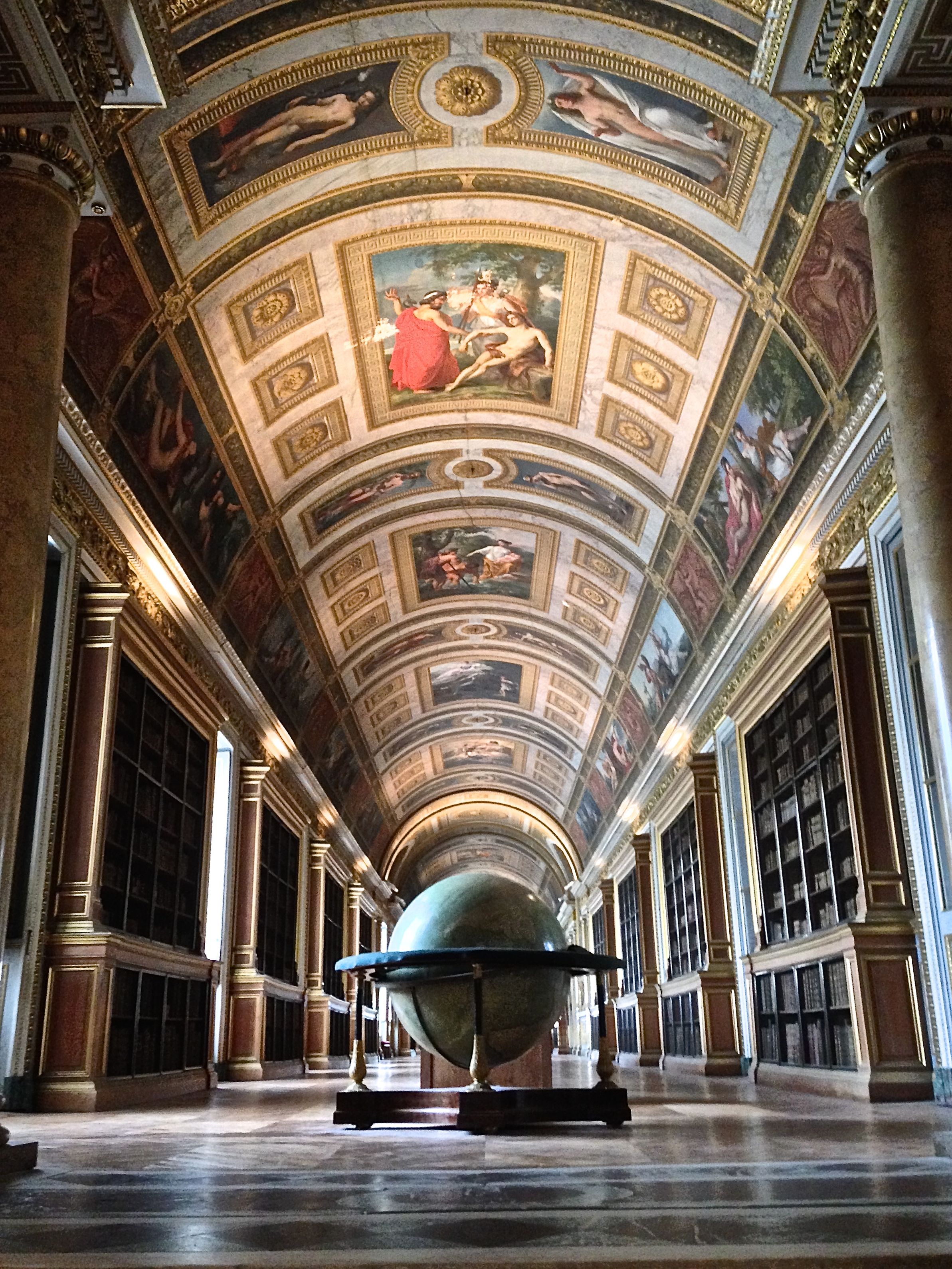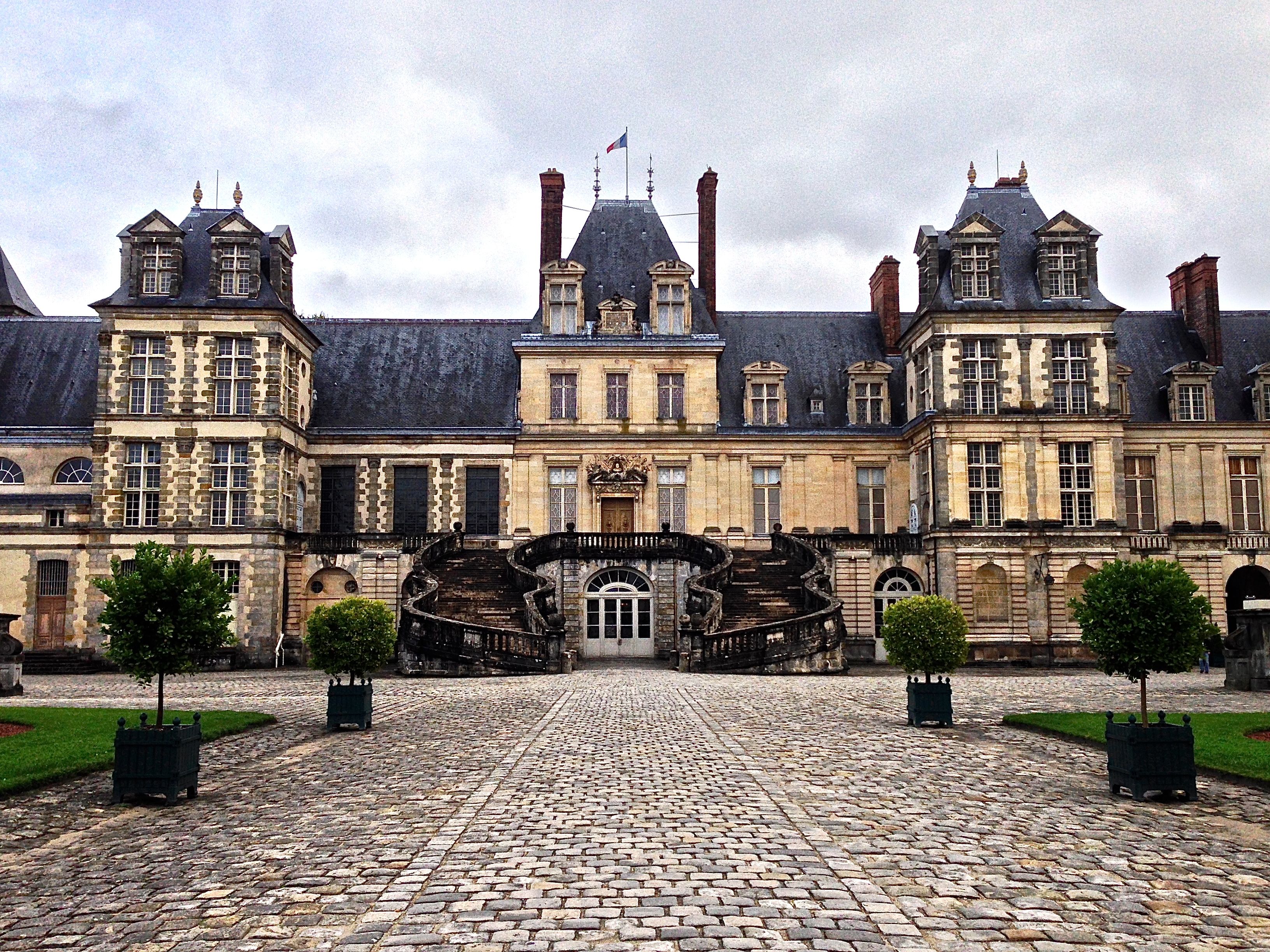 From Chantilly, we drove to Fontainebleau to see the Palace of Fontanbleau, which is one of the largest royal chateaus of France. This Palace was used as a Palace by Louis VII through Napolean I. It is kind of a miniature Versailles, although miniature could not be used to describe anything in the Palace. It is incredibly large, beautiful and full of original antiques including the desk that Napolean used to abdicate his throne.